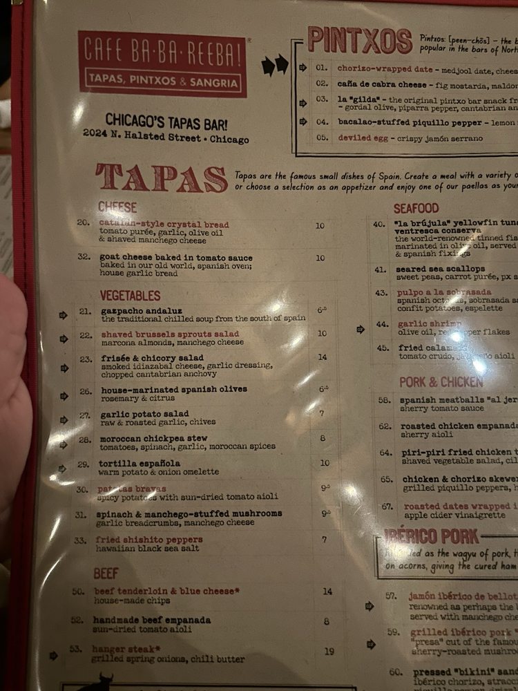Cafe Ba-Ba-Reeba! is a trendy Spanish tapas bar in Chicago, offering a wide range of dishes perfect for sharing in a group. Customers rave about the Brussel Sprouts Salad, Torrijas with blueberry-lemon compote, Catalan-style crystal bread, and Patatas bravas. The atmosphere is lively, with happy hour specials and a great selection of sangrias. The service is quick and efficient, with dishes coming out hot and ready. The menu caters to pescatarians, vegans, and limited vegetarians, with options for everyone. The ambiance is vibrant and perfect for a fun night out with friends. Overall, Cafe Ba-Ba-Reeba! offers an authentic Spanish dining experience with flavorful dishes and excellent service in a trendy setting.